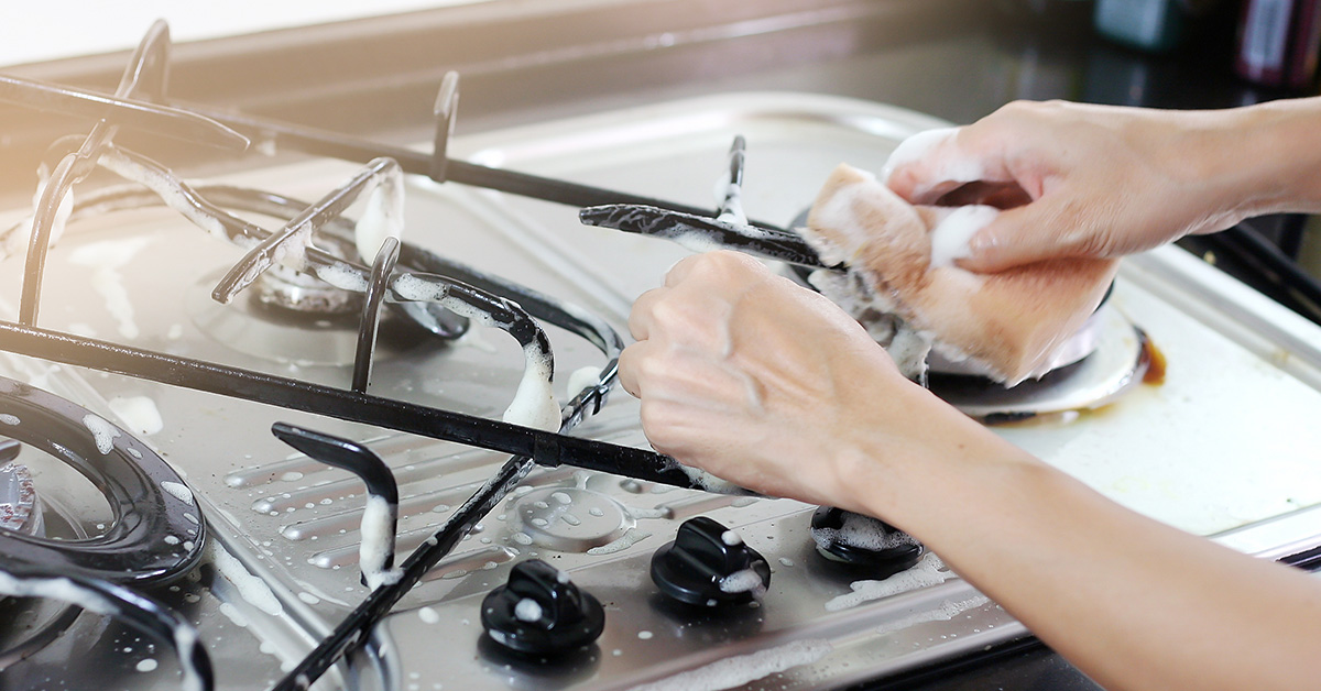 Clean Extractor Fan: Next time you cook, put your palm on the ventilation fan above the stove. There’s probably more grease there than on the pan. The extractor fan falls into the ‘out of sight, out of mind’ category, and the mesh hood can start looking pretty gnarly. Make sure you’re wiping down the fat and oil deposits at least once a month because the longer they’re left, the harder it will be to get them out.